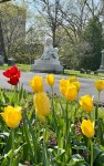 So, here I sit on this dull-looking Sunday morning, glancing to either side to see a lavender wisteria bloom or a bright pink Rose of Sharon bloom. Chief is in his familiar Sphinx-like pose as he guards the backyard from atop the steps and all three girls have retreated inside.
