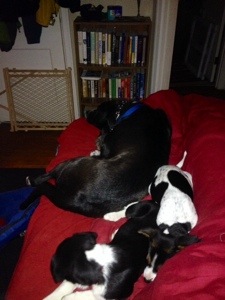 I figured the pups would join me in the one twin bed, while Chief nestled on the bed to which he has been accustomed.