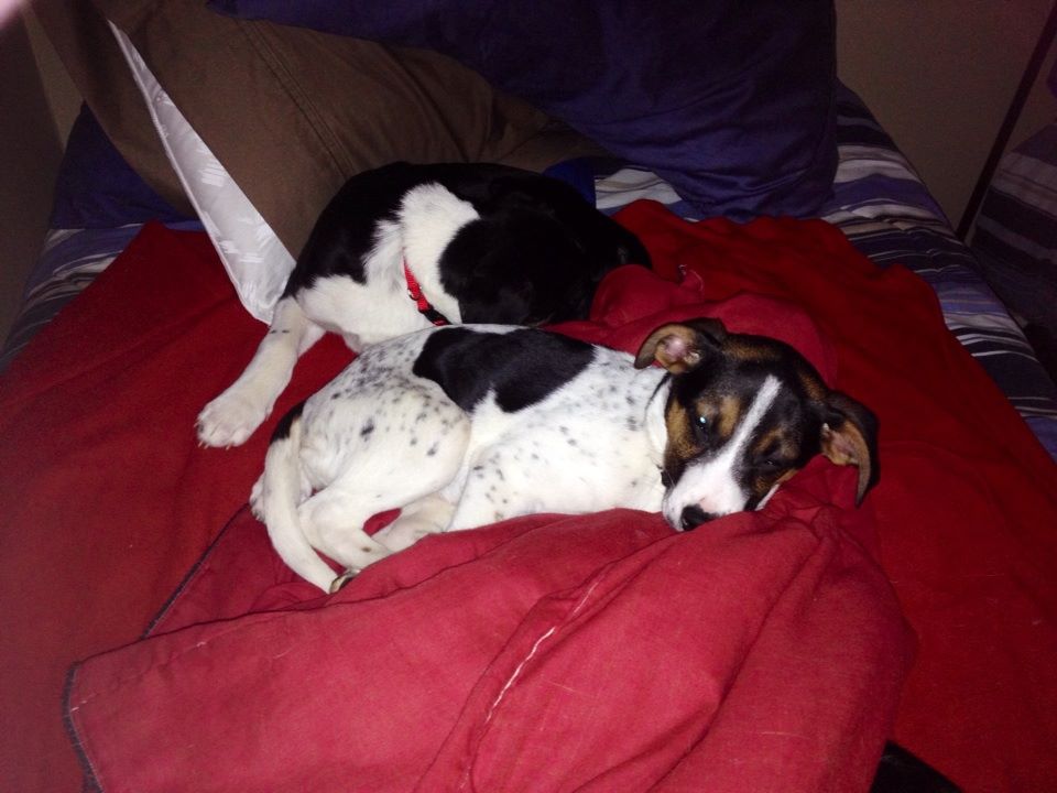 Each time I get out of bed in the middle of the night, I always return to find one, or both, pups laying on my pillow, or in my vacated spot. Flyer and Navi always did this.