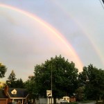 The rains poured, prohibiting me from grabbing some items from the garden center. By the time I reached home, a beautiful double rainbow commanded the eastern sky. The backyard looked ethereal, and lush.
