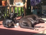 I rose at 6:30 AM, lounged on the deck, and fell promptly fell asleep. At 7:45 AM, I rose to go make coffee, and made it as far as the guest bedroom, right off the deck, and laid down with my three smugglers.