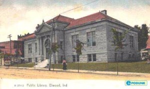 For 94 years, 1903-1997, the $30,000 Carnegie funded library stood at the Southwest corner of North A Street and 16th St., directly across from the old Elwood high school gymnasium. It was one of 164 libraries funded by the Carnegie Foundation.