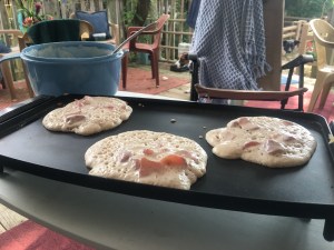 We began the day early with appointments, and some errands. I worked from the deck the remainder of the day, and when I felt the need to prep my strawberry pancakes, the deck was the place.