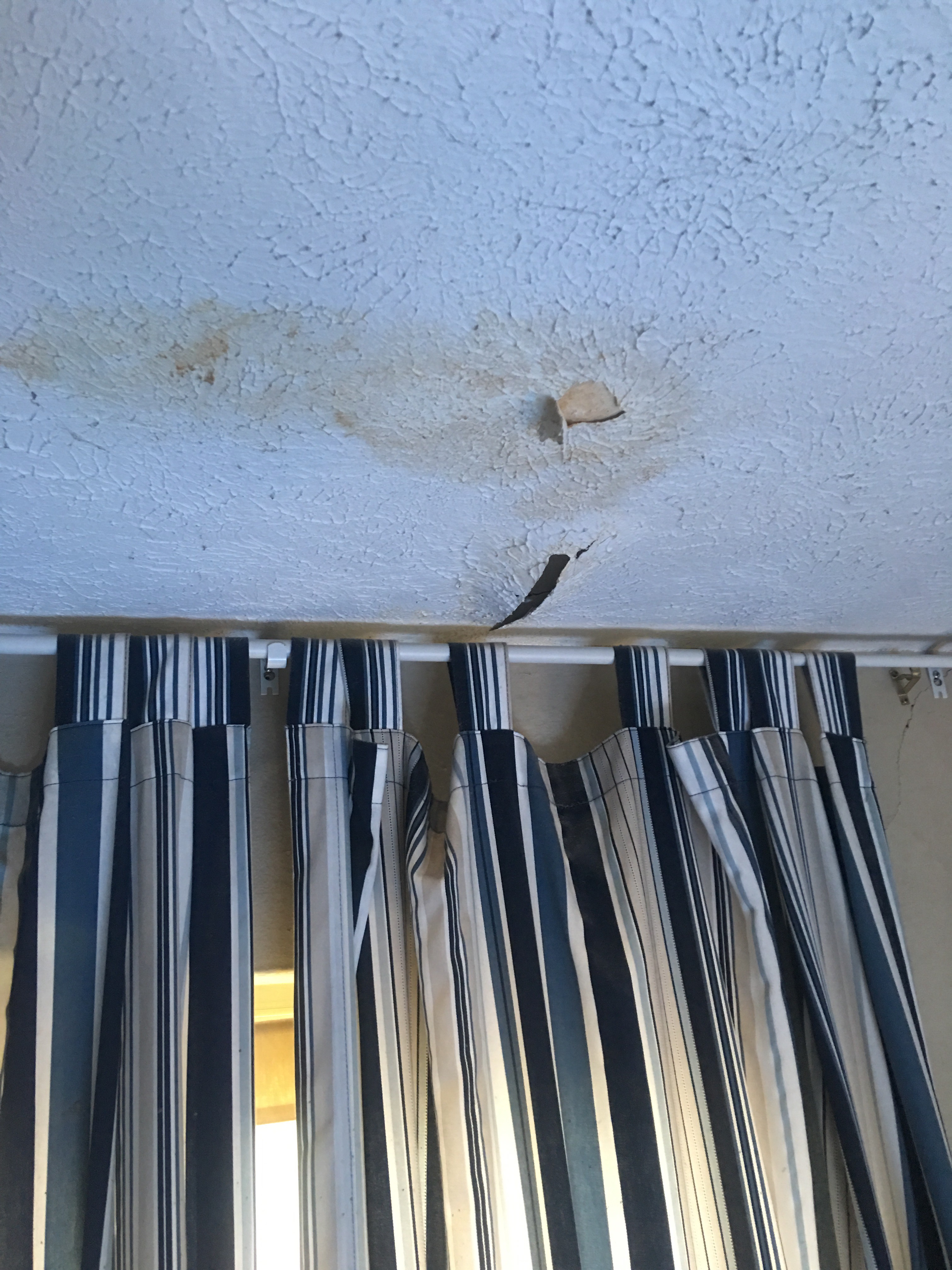 - Several weeks ago, Griffith pointed out a small spot on his ceiling that appeared after about four days of rain; today, I discovered it had grown quite a bit more: still smiling and laughing – again, we still have a roof **
