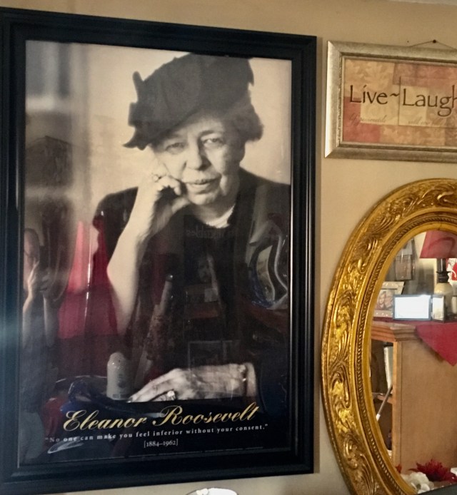 Mrs. Roosevelt’s framed poster portrait and quote over power my study for students to see.