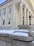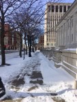 The sidewalks in downtown Dayton are barely shoveled in most places. Some of the plowed snow blocks street / sidewalk connections and is already slushing and puddling.
