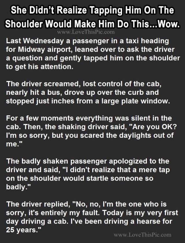 The jarring set everything into motion: the body forced the straps apart and resumed its upright seated position. A very stunned Mr. Jackley lost control of the hearse and ran into a light pole.