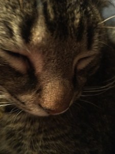 This week of being in bed with a major sinus infection has been made all the more bearable by having Neko as a comforting pal. He takes over the edge of my pillow, purring, kneading, and wrapping his paws around my wrist or arm. Neko doesn’t mind my numerous trips to the bathroom since the medications raise my blood sugar; he seems to enjoy smothering me with his affection.