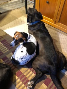 Bailey has eaten on and off, and this morning she finally ate a full breakfast since Friday. She’s stayed even closer to Chief’s side these past few days.