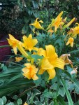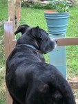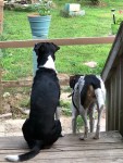 7:00 AM: coffee and toast on the deck while the canine crew explored the yard on heir morning rounds.