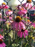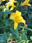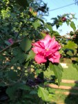 Today, only five Mary Lincoln day lilies are joining us. It appears more are to follow but their tenure is close to its end. The Rose of Sharon is filled with blooms and my neighbor’s coneflowers push through my side of the fence, which I appreciate.