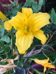 Two Mary Lincoln day lilies are dancing in the breeze and all seems well in the front yard.