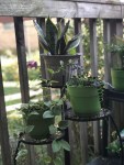 A little breeze moves along and through the property; the wind chimes are tinkling a bit with the sounds of birds, traffic from the other side of the house, an occasional bark from Chief to passers by, and a bit of construction next door in he high school’s new auditorium. Now and then, a nice gust surprises the yard, startling the chimes into a frenzied dance.