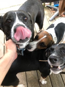 She wandered around the deck, unaffected by my presence. The dogs, who would normally pounce, remained in the guest bedroom watching with calm amusement.