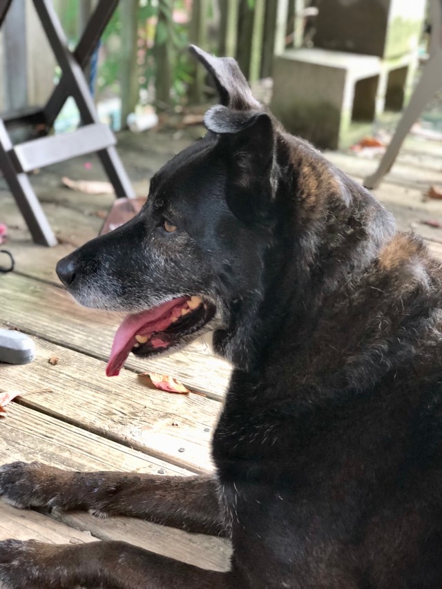 Then, I said, “Erma!” and she came strolling over to me, tail wagging, and her mouth in what appeared to be a doggie smile.