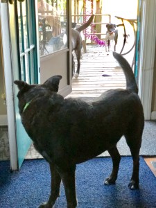 While the other dogs conduct their morning ritual of scouring the yard for invading creatures, Erma stays by my side.