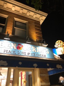 I walked through the campus, marveling at the chapel tower illuminated at night. The students relaxingly sauntered through campus and the Brown Street eateries were calm with diners outside enjoying conversation or the big screens. I sat at the corner of Brown and Irving streets enjoying two scoops of raspberry frozen yogurt from Ben & Jerry’s.