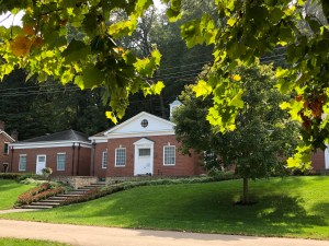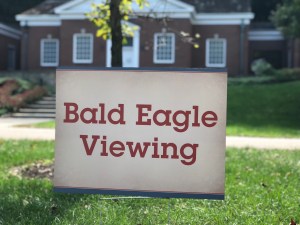 Right now, I am sitting across from the Wright brothers hall, eating lunch and peering into the wooded background to spot one or both of the two eagles.