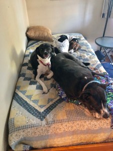 Tuesday morning – Harrigan is snuggled next to Chief, again