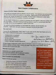 I spent the remainder of the evening at a really neat seminar by the Next Chapter Collaborative. It was designed for folks over 50 who are possibly seeking a new career, a startup business, retirement, volunteering, etc. It was quite an adventure of exploring so many fantastic possibilities. I got to meet some super new folks and got to see Steve and Lorrie Makofka.