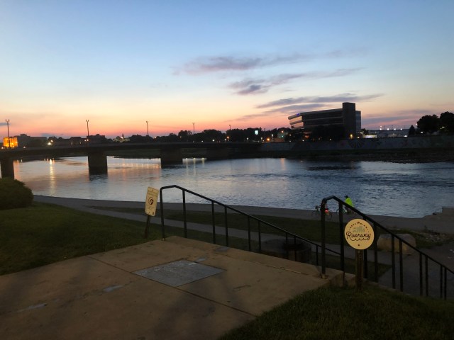 It’s mid August, and this is my first visit to Riverscape where I’ve climbed into my favorite swing over looking the Great Miami River.