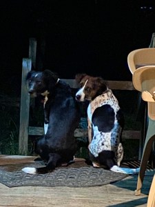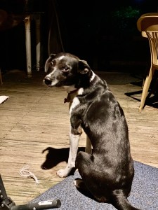 We’ve been lounging on the deck, a mildly cool evening with much quiet; even the Shroyer traffic is a bit muted.