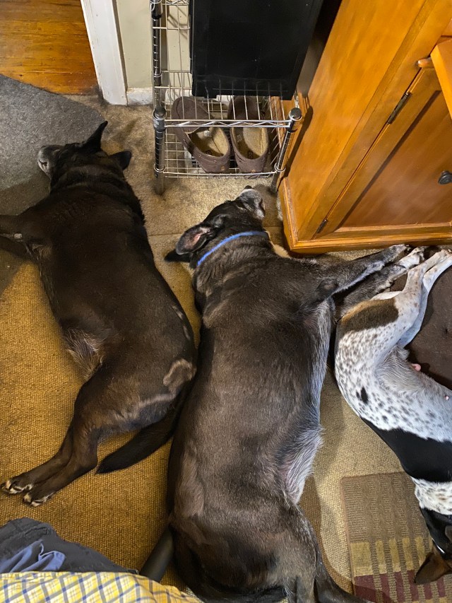 While I was teaching Marisha, I looked over to see Erma, Chief, and Bailey. Harrigan was in her favorite corner, curled up, sleeping.