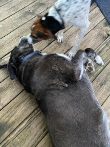 Chief and Erma, as always, are lounging near me while the ever animated Bailey and Harrigan are on paw patrol. Chief got fairly high playful and was enjoying an ounce of major energy! I love those moments when he lets loose to enjoy life.