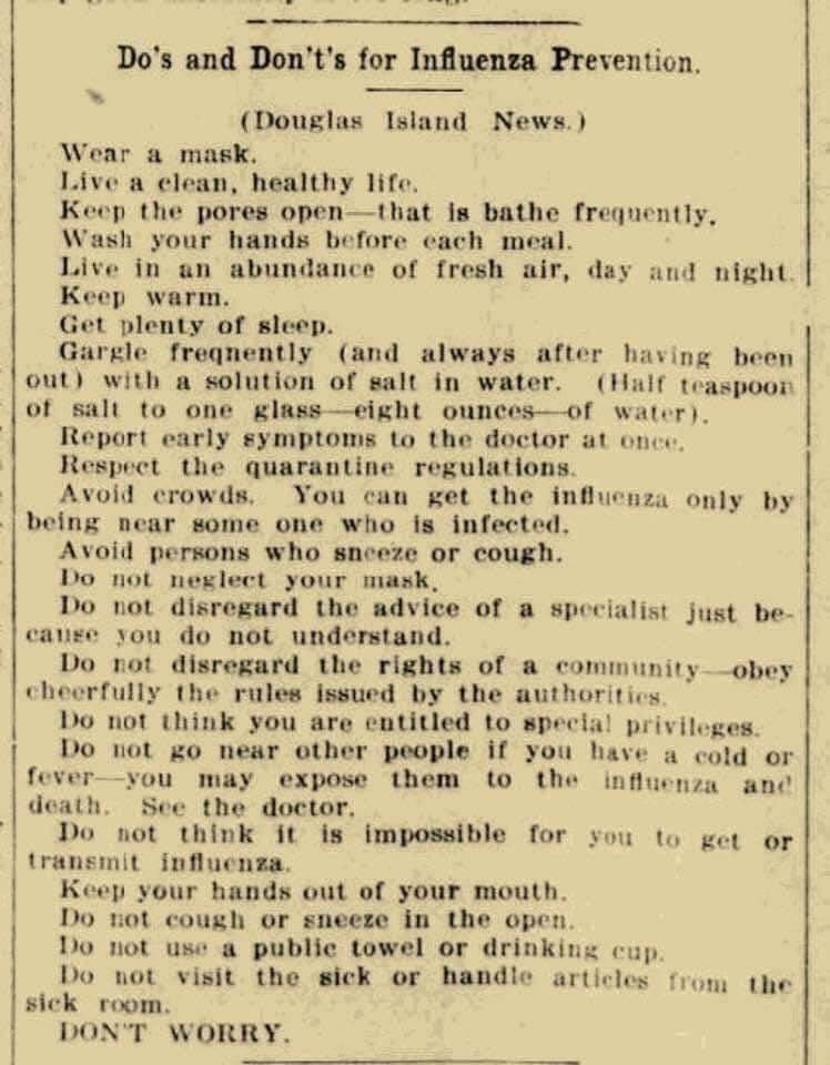 This was an interesting newspaper article from 1918 as our nation battled that pandemic.