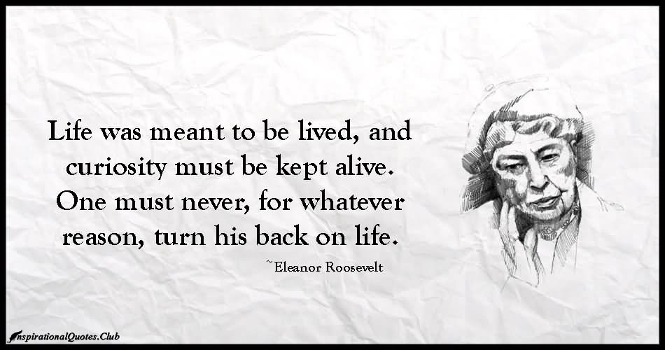 Yes, I have my moments when a memory prompts a tear, or two, however, I’ve always believed in Mrs. Roosevelt’s reminder, ”Life was meant to be lived, and curiosity must be kept alive. One must never, for whatever reason, turn his back on life.”
