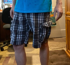 It’s funny that we had much the same taste in summer shorts we both wore year round. But, what’s nicer is that I don’t have any of those damn Goodwill Store plastic barbs to cut out before they scratch me.