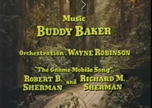 Tonight I was remembering the delightful song but when I checked the credits I was surprised to see the score was composed by Buddy Baker. The theme song, however, had the unmistakable thumbprint of already legendary Sherman Brothers. Later down the list, it was noted that Robert Sherman and Richard Sherman offered their talents with writing the theme song.