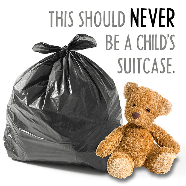 Several sons reported they’d return to their foster homes after school to find trash bags filled with their “life” piled on the front porch, waiting for the social worker to arrive and transfer them to a new foster home. One son saved each bag for future moves until the weakened bag could no longer serve it’s humiliating purpose.