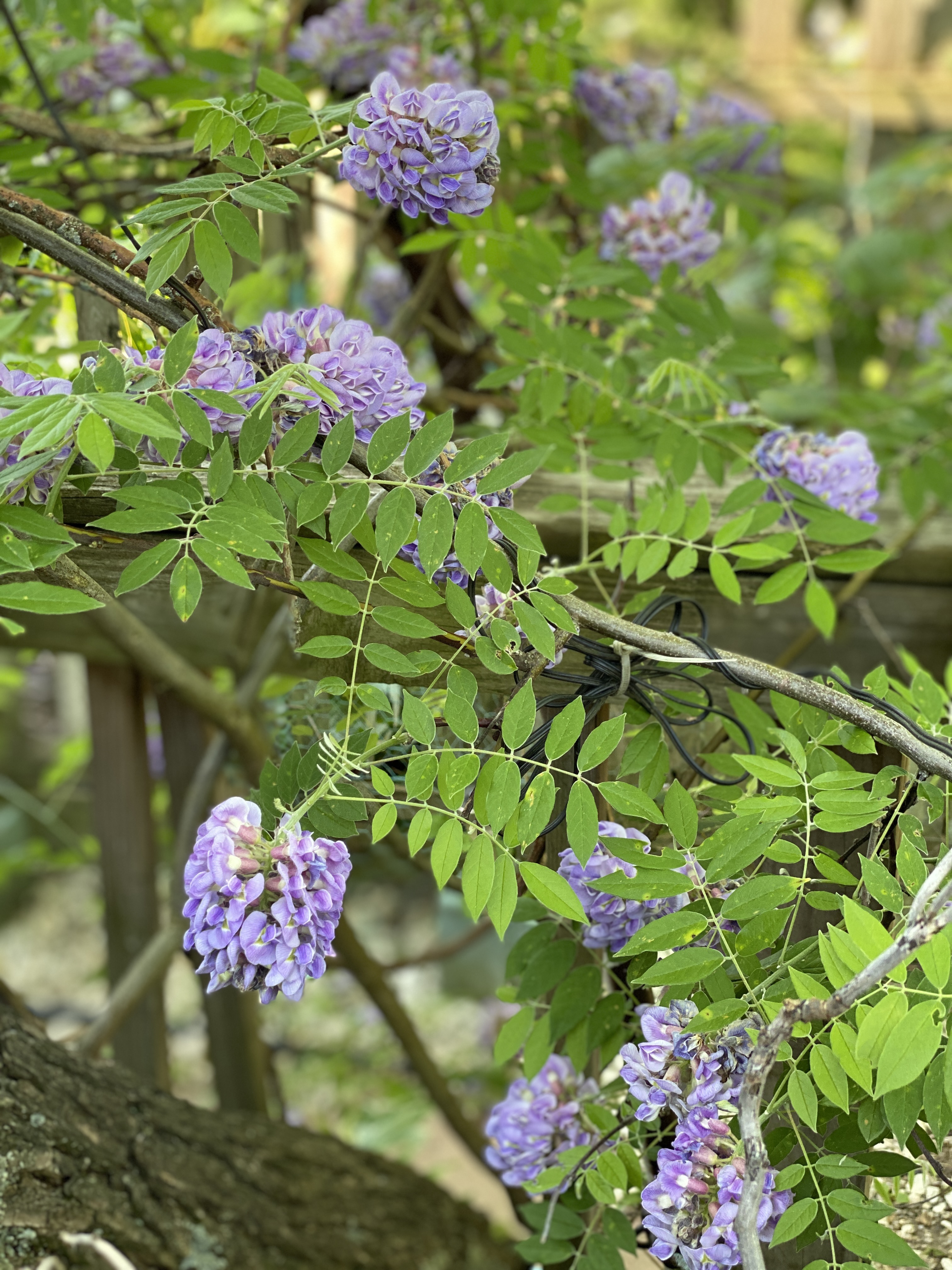 The wisteria’s climb up the deck’s tree is looking more beautiful and there are newer irises in the front yard.