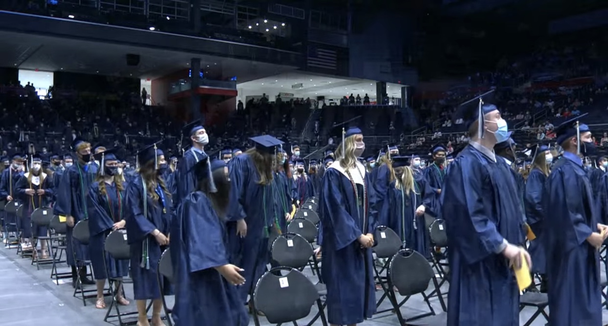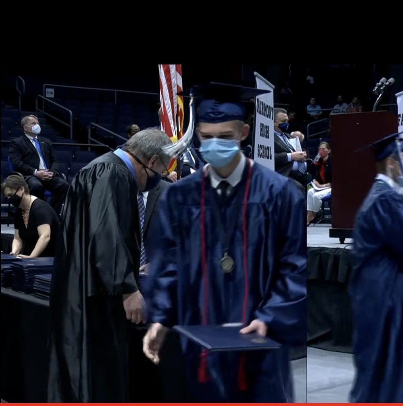 I took an hour’s nap and returned to my writing station on the deck, tuning in to the live-stream feed of Fairmont High School’s 2021 commencement ceremony. The Class of 2021 was just been presented by the head principal to be presented their diplomas.