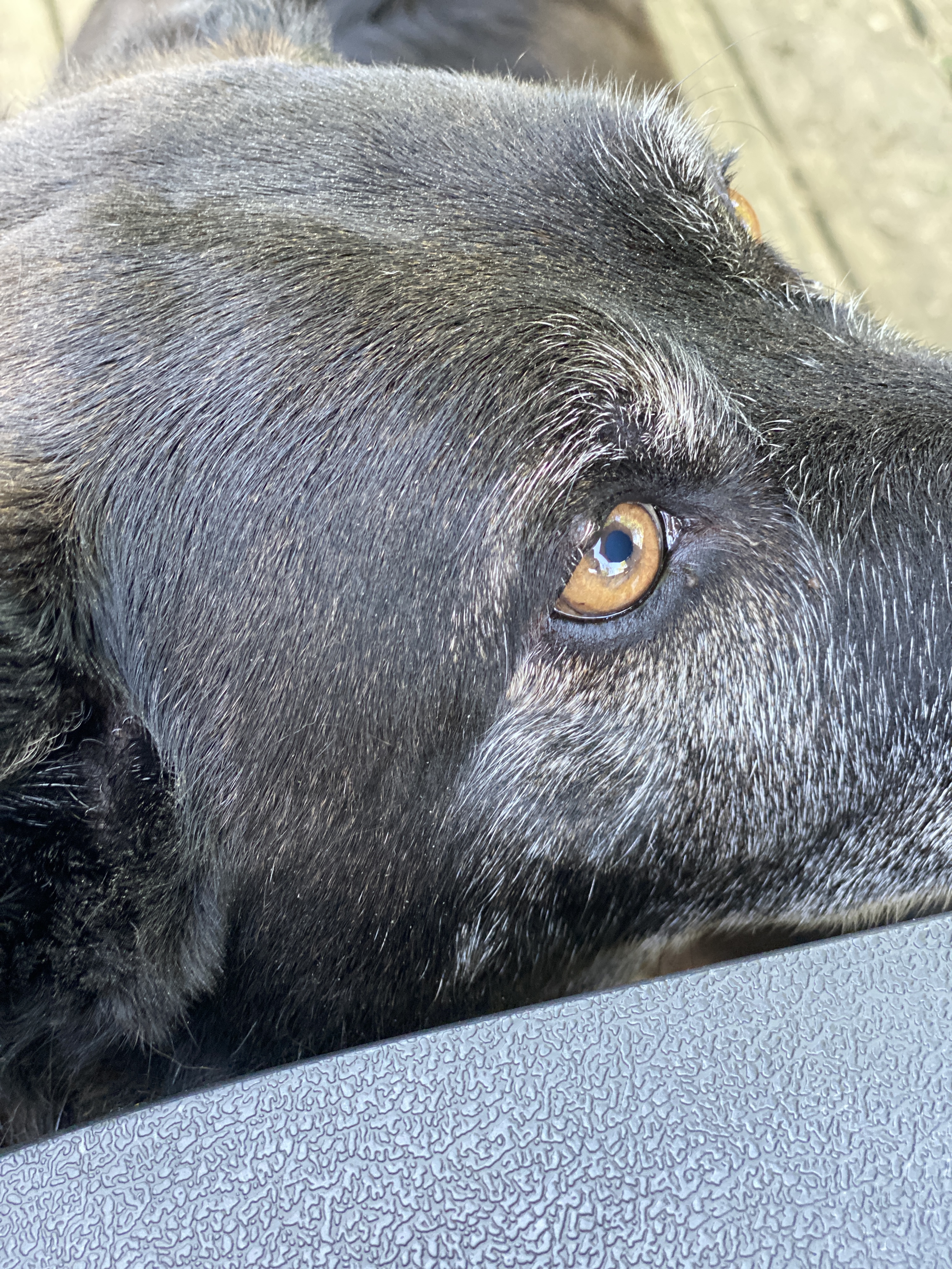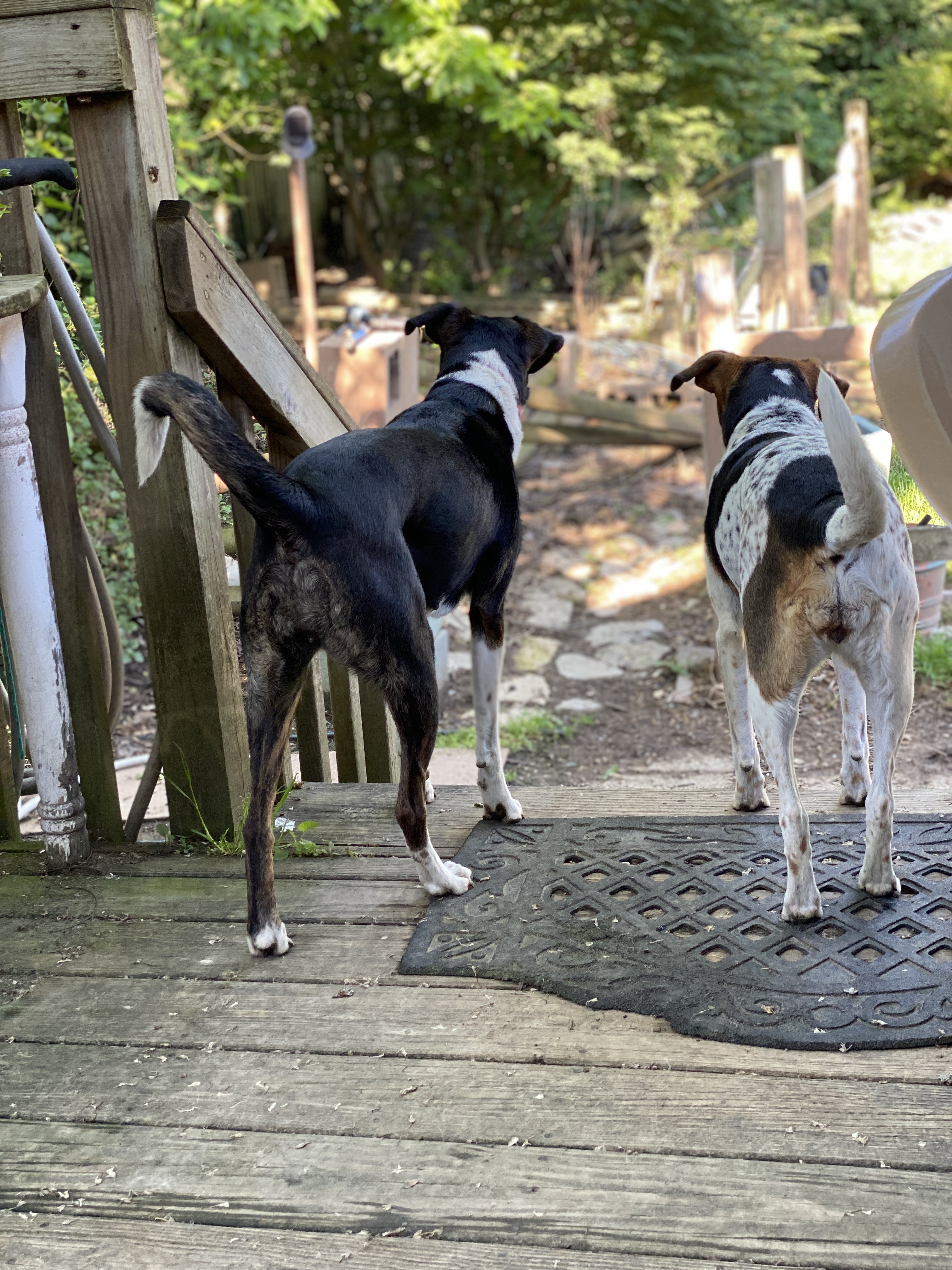 Today, it doesn’t matter the day’s name nor the order it follows. It’s beautiful with a tiny breeze bouncing around leaves and chimes, the smell of still-wet-ground from the heavy rains, the squirrels pissing with Bailey and Harrigan, disrupting their reclining positions for the big chase every four minutes, and the various pitches and rhythmic hums of cicadas.