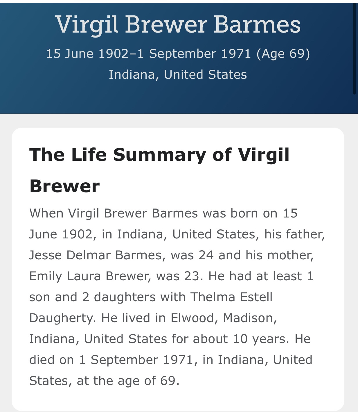 Today is the birthday of my maternal great grandfather, Virgil Barmes, who was born in 1902.