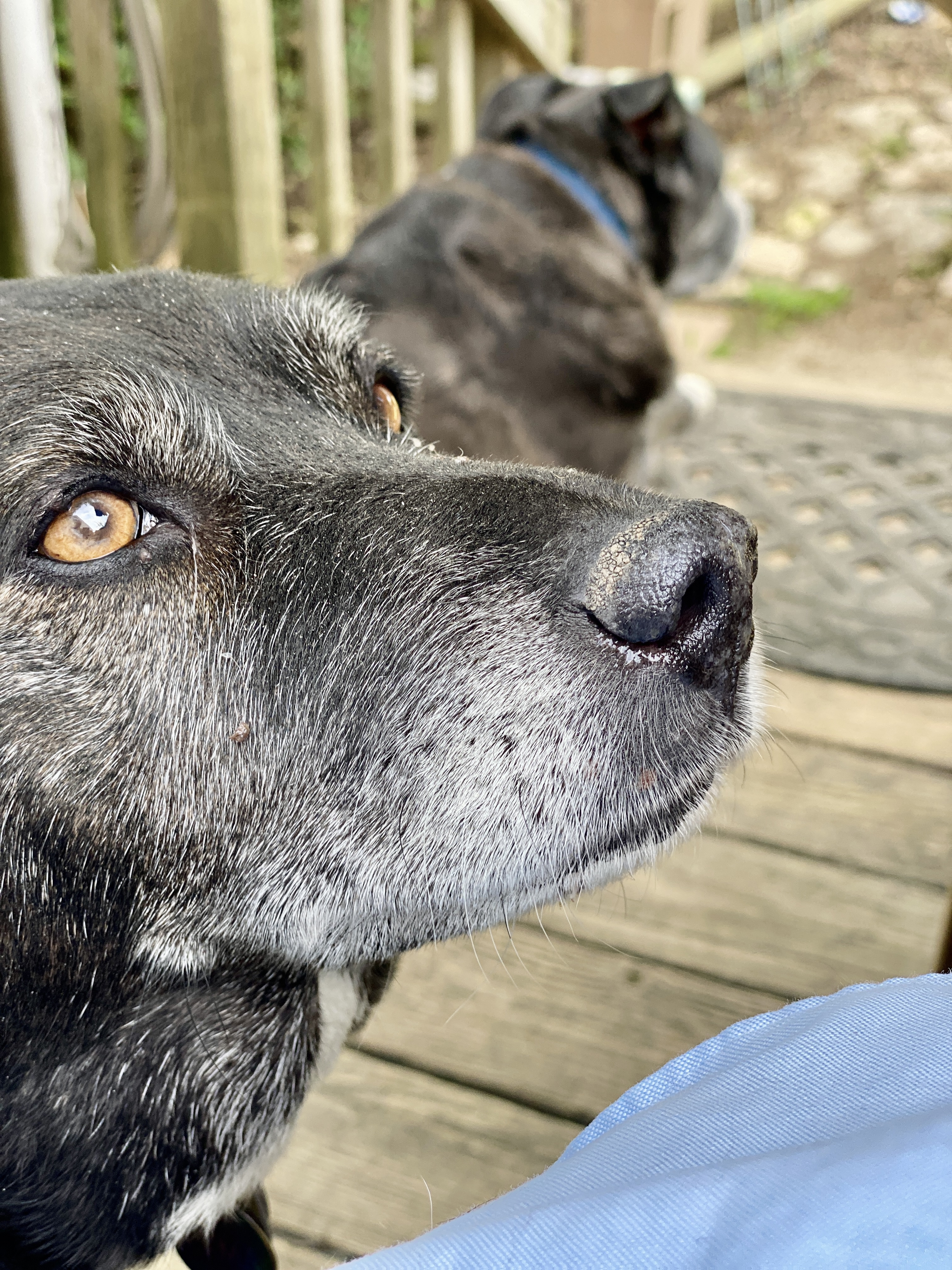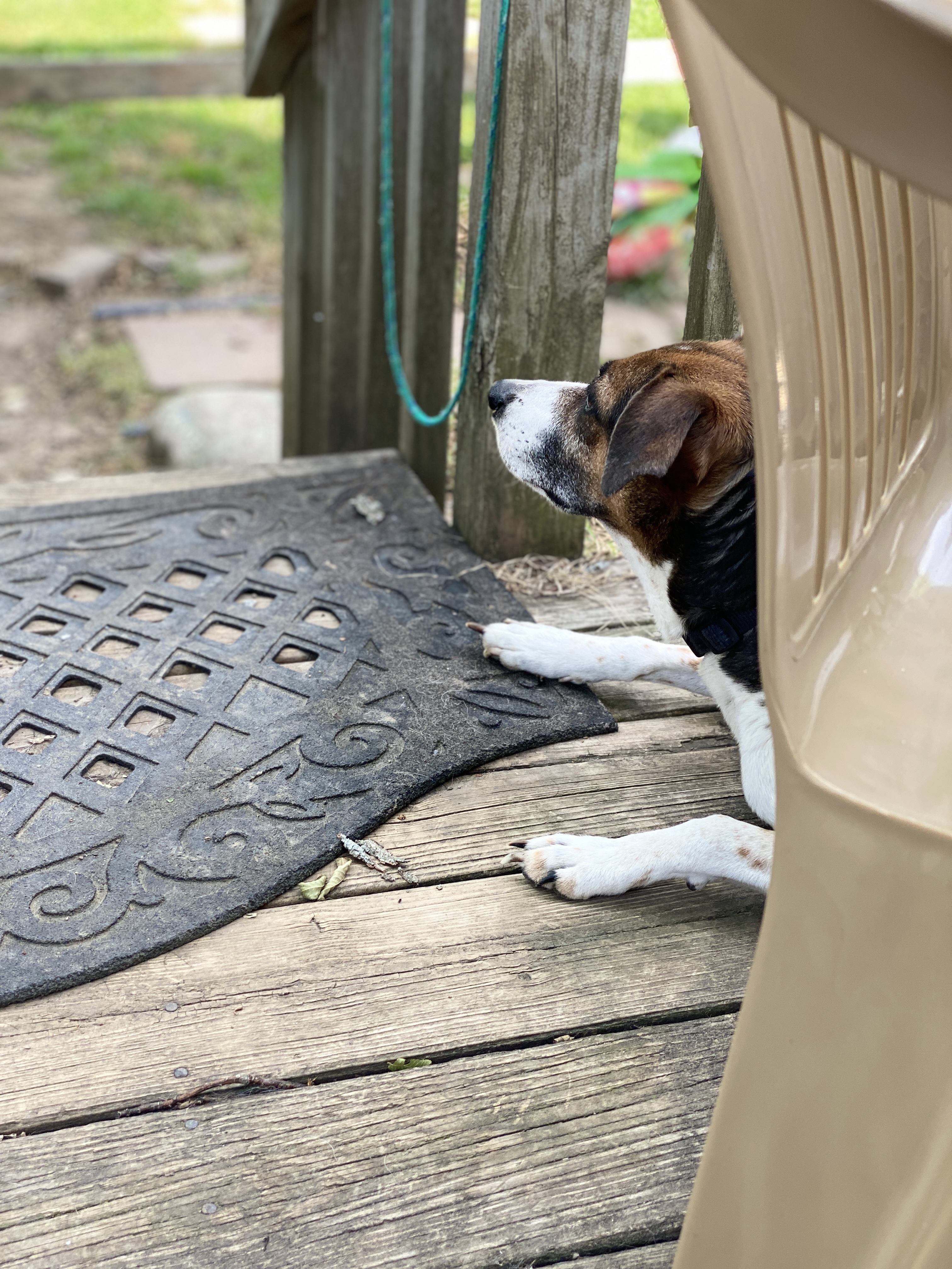 Right now, The Sisters rush from the deck to bark at passing dogs along Rockhill. Chief manages to pull himself up, much slower, scramble across the deck and down the steps. He reminds me of all the beloved Golden Era celebrities crossing the stage on Johnny Carson’s nightly show and later, more aged but still full of spunk as THE LOVE BOAT guest stars. T