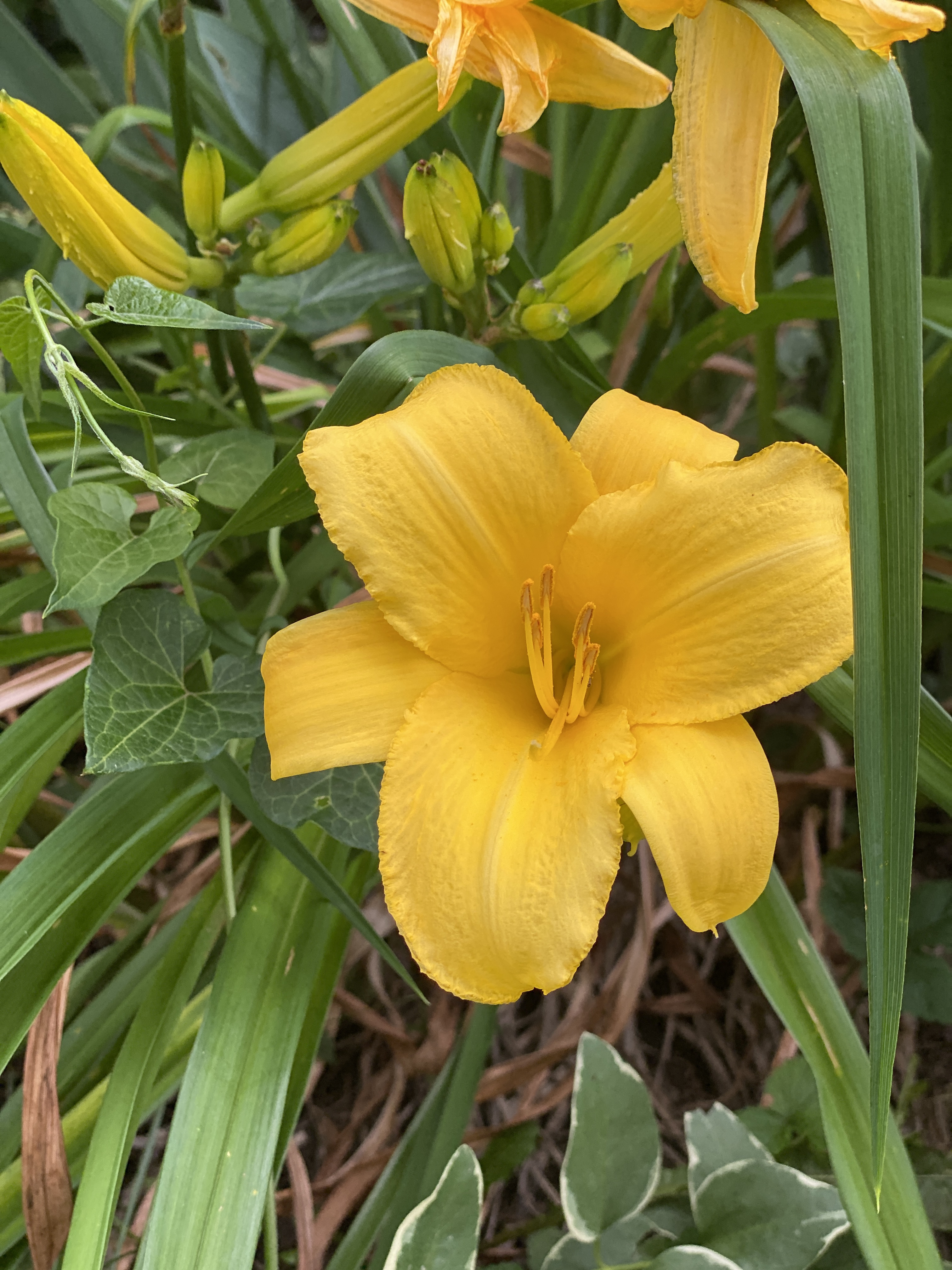 It’s nearing 10:00 AM. I’ve had a peaceful, relaxing morning. Three Mary Lincoln day lilies are dancing in this nice, strong breeze while the cloudy, overcast sky threatens and teases us with rain.