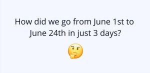 My cousin, Judy, posted this meme and it has been so true for the month of June. It seems that June arrived this year, not only busting out all over, but she took off running at a full sprint!