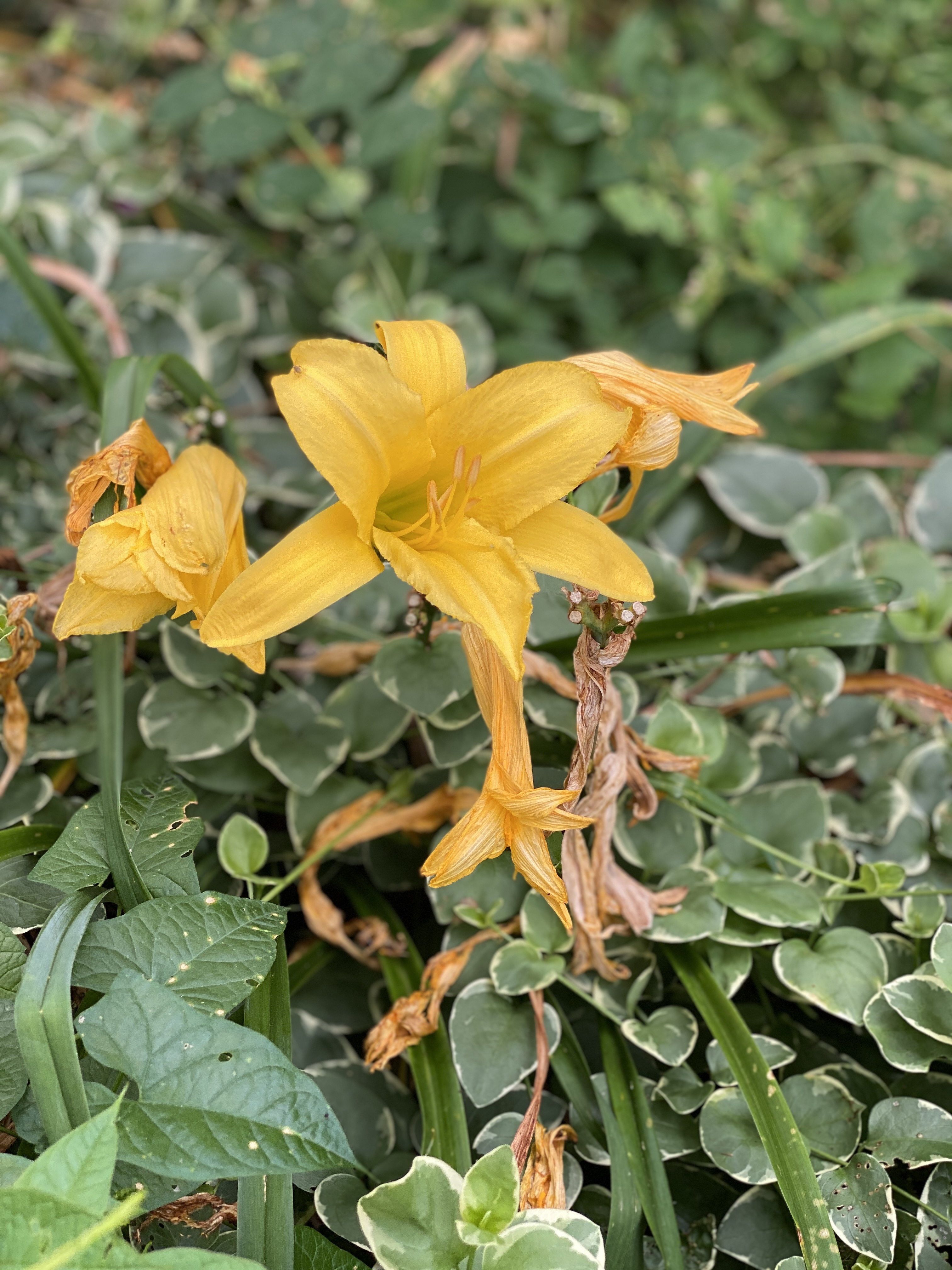 I went to the front yard to bid farewell to two final Mary Lincoln day lilies, thus ending the 2021 Mary Lincoln Day Lily Festival de La Haasienda. I am always grateful to Debbie and Jim McCutcheon for giving me four plants many years ago. What a joyful reunion they become each June and into July.