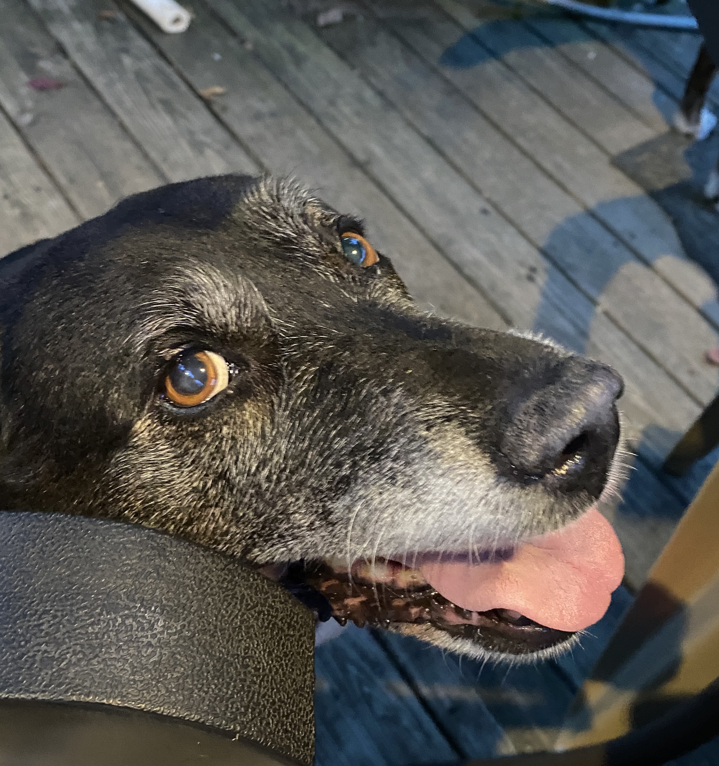The deck is a bit cool and humid but comfortable. A massive front is moving in and appears to be arriving within the hour. I beat the second round of rain for yard work but am clinging to my deck time.