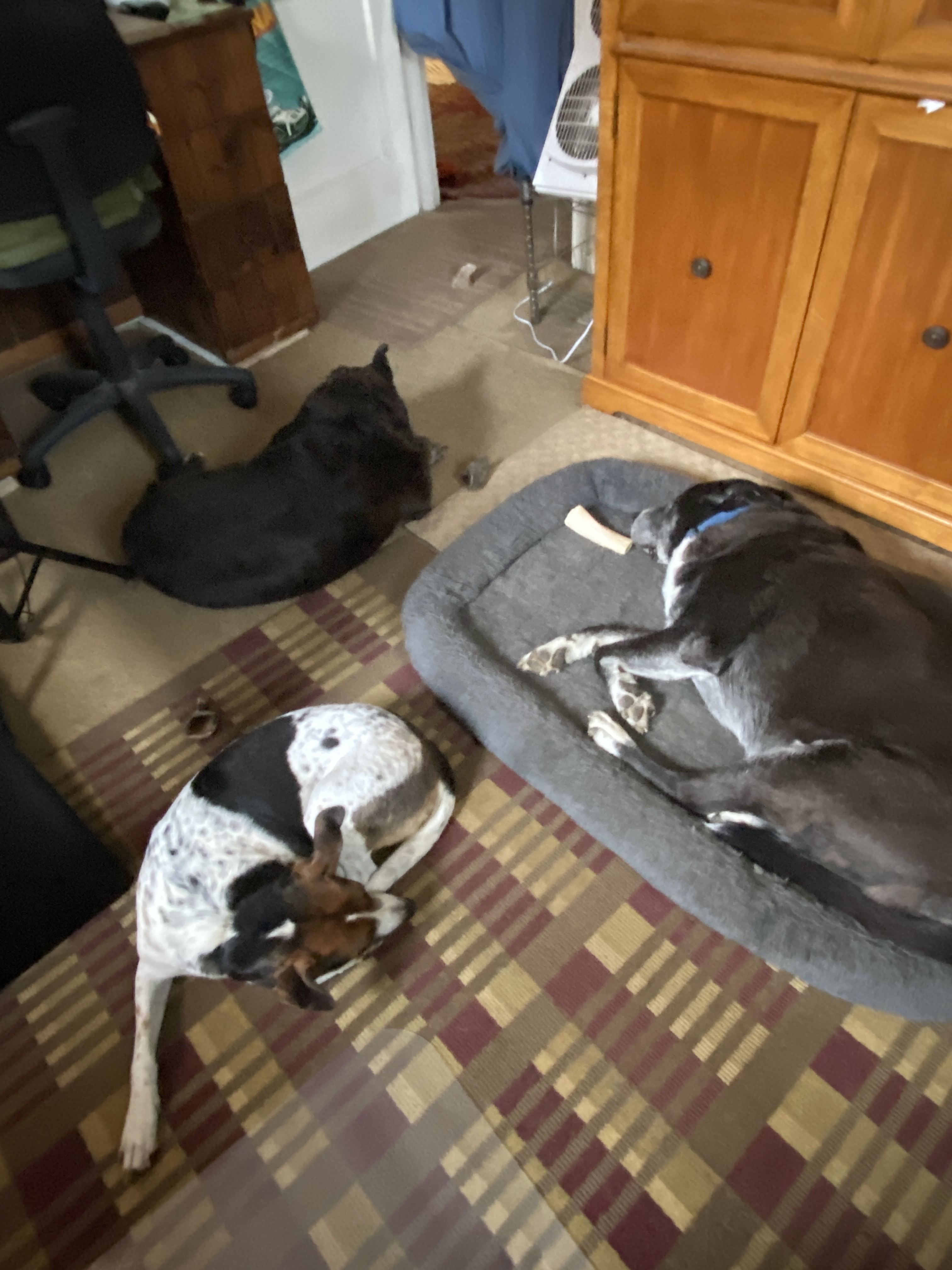 By 8:00 AM, the dogs were fed and I proceeded to clean the bathroom, start the fist of two loads of laundry, cleaned the stove and most of the kitchen, prepped my coffee and bagels with strawberry cream cheese.