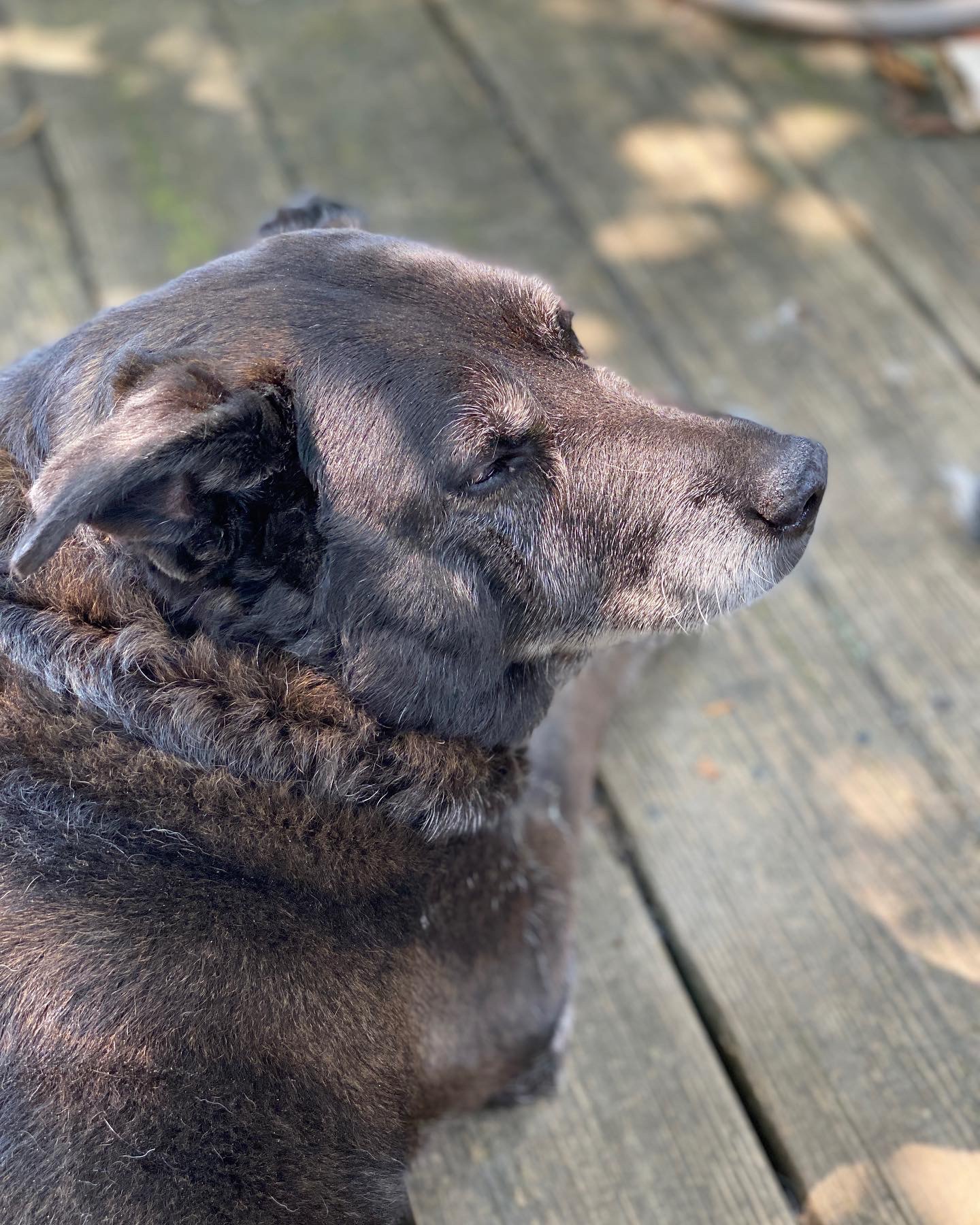 Spread across the deck are four special pals. Erma has provided me numerous breaks, reminding me I need to love on these pooches!
