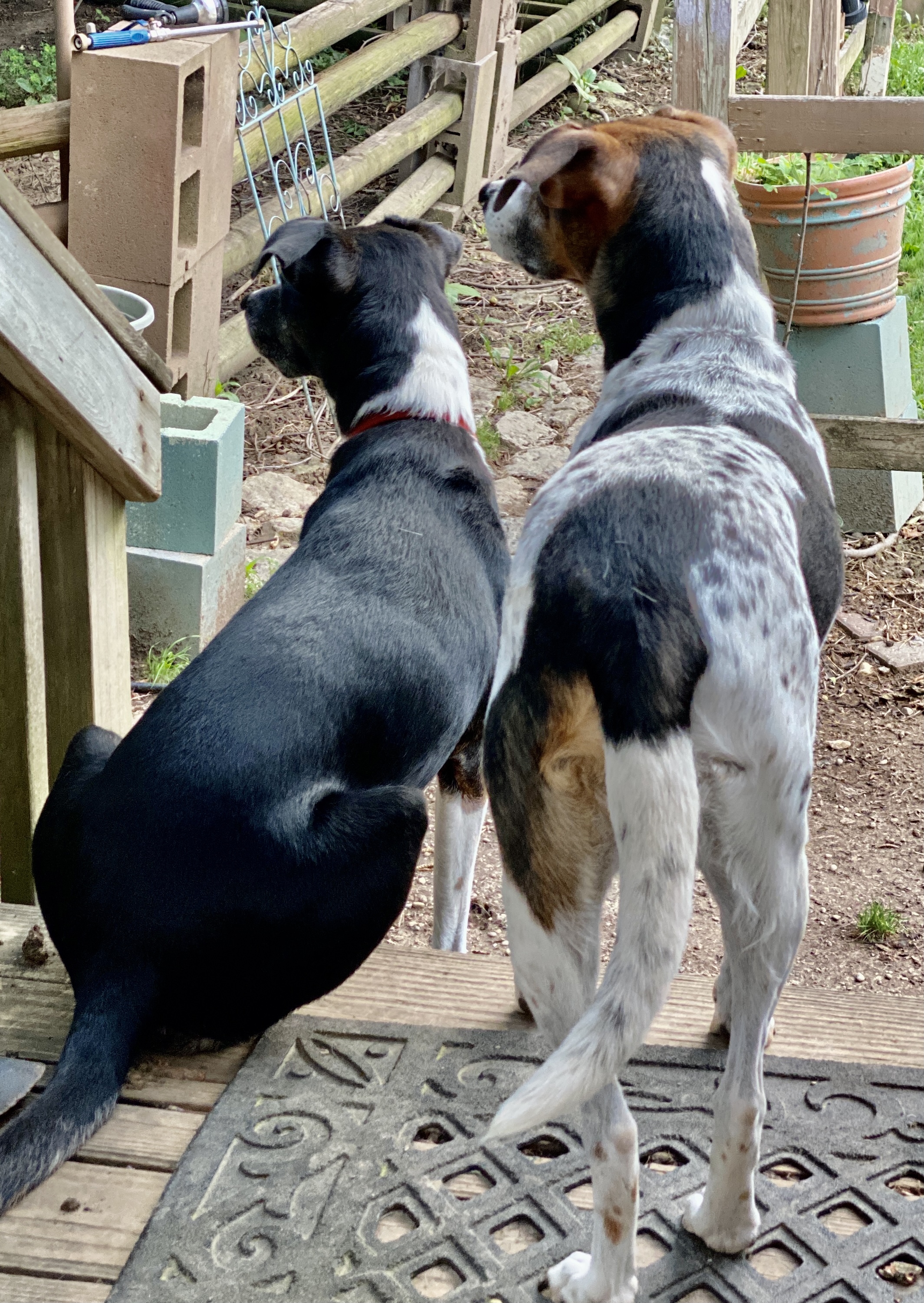 Some folks are hanging out in the high school’s north parking lot with their motorcycle and their animated conversation is keeping Chief and Erma on high alert. I can only assume they’d be equally defensive beyond the enclosure of The Haasienda.