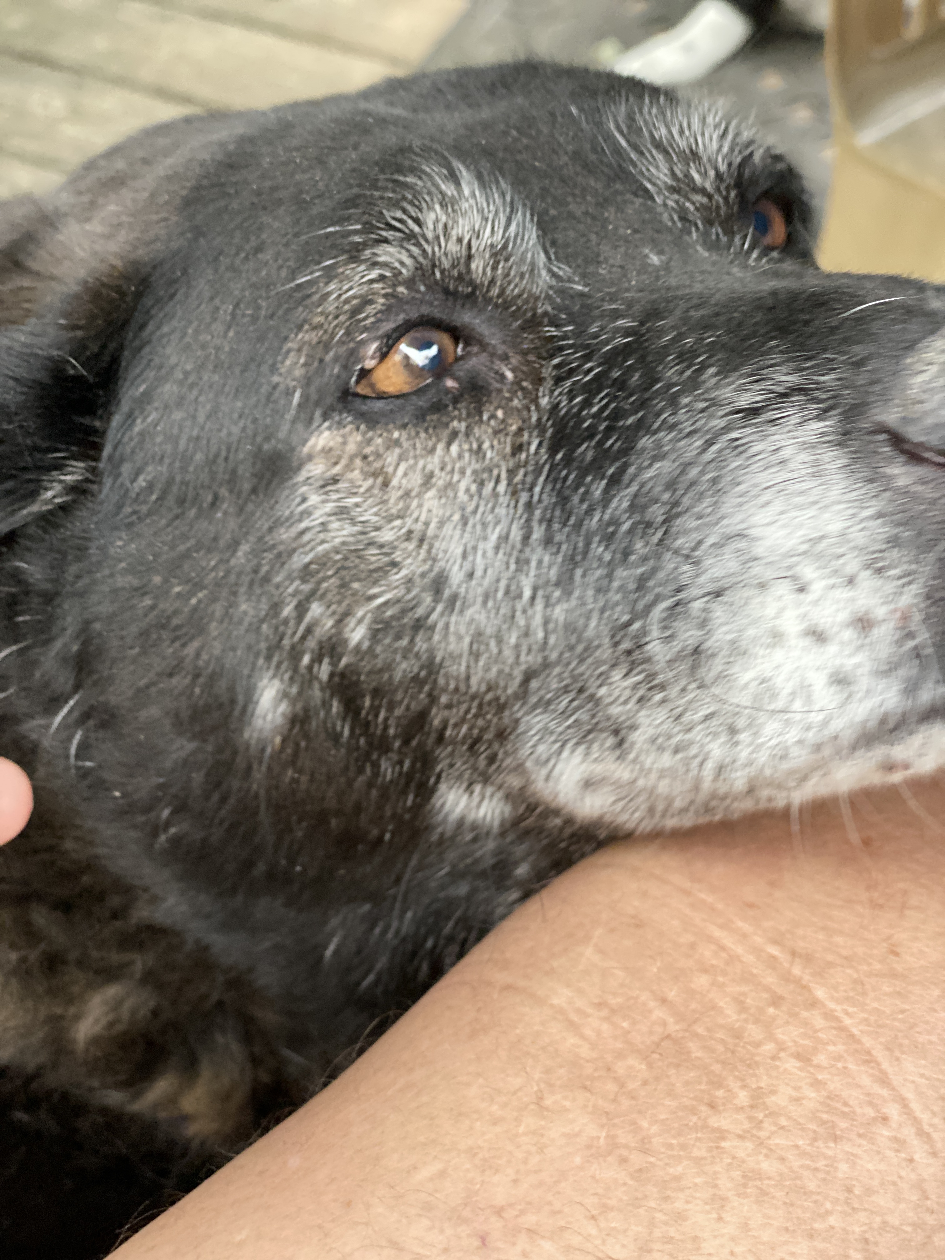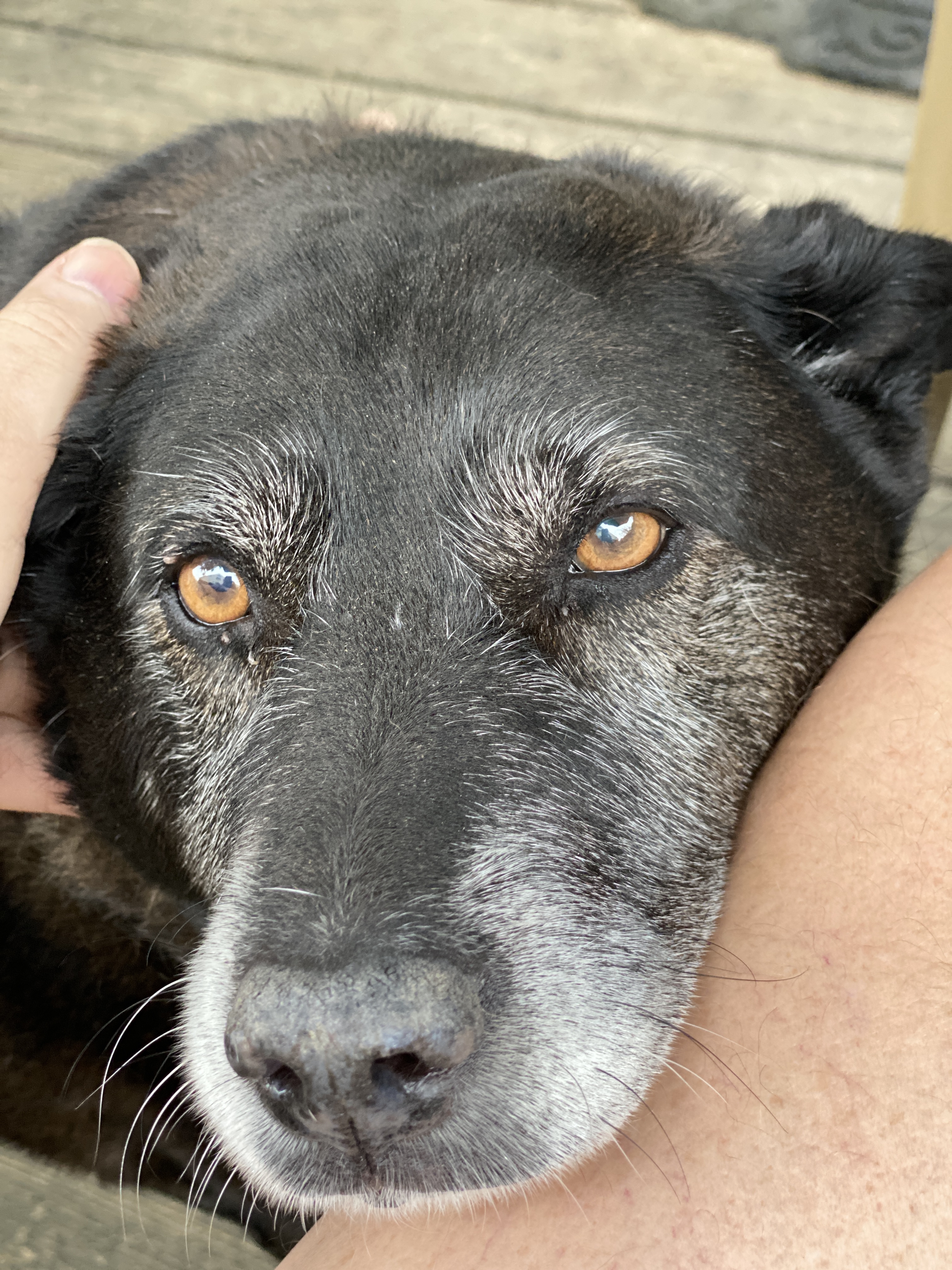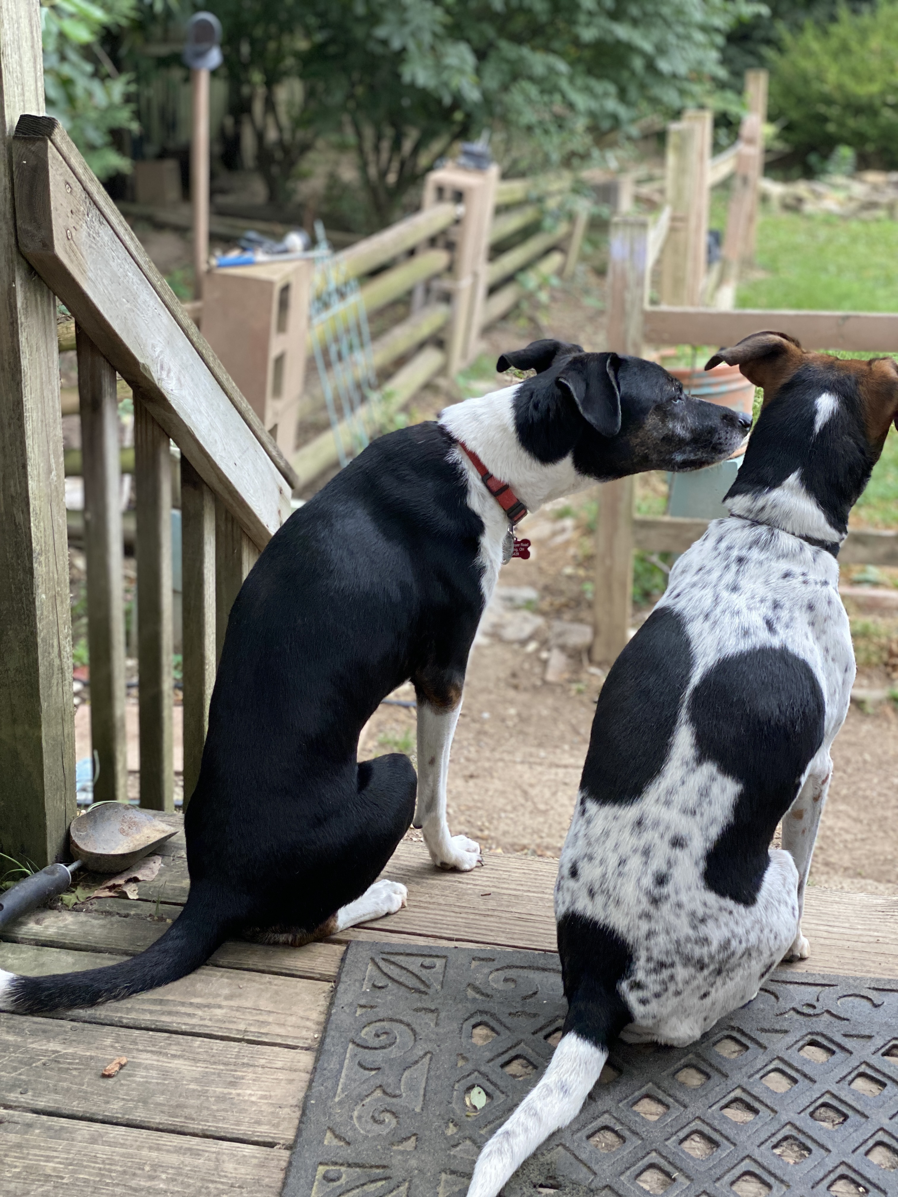 The pooches are in the accustomed spots around the deck with Bailey and Harrigan perched atop the deck steps to scout the backyard, Chief on his mat, and Erma stretched out beside me, coming to my knee for her periodic reminders for me to rest a minute so she can receive attention. I do look forward to those reminders. Wednesday will be Erma’s third Gotcha Day which feels odd as it seems as though she’s been with me forever.