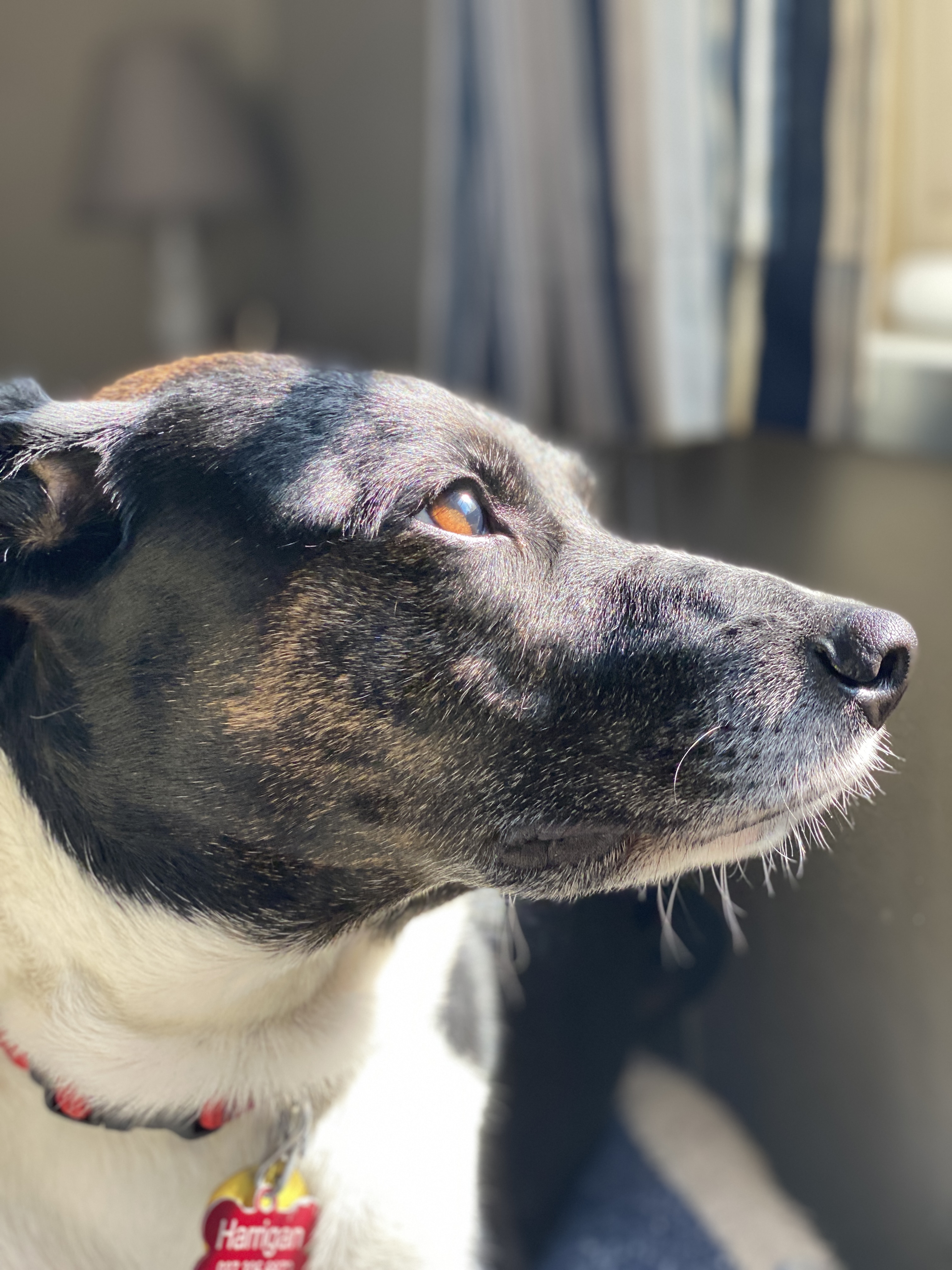 Harrigan is far less energetic than Bailey, but that doesn’t mean she is low key. Her brain is always working and you can follow her thought patterns at times. If attention is not shown her within a reasonable amount of seconds, Harrigan will raise her paw to tap at you.