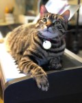 My piano students learned how to play around Clyde who often laid on the keyboard just above the keys, sometimes even rolling over onto the keys as they were playing. Clyde seemed to adore Ethan Webb and never left the piano during Ethan’s lesson. One night, Ethan played a repeating high Bb while Clyde sat tall, watching Ethan’s hand. Ethan would tap the Bb and then Clyde would paw the same Bb.