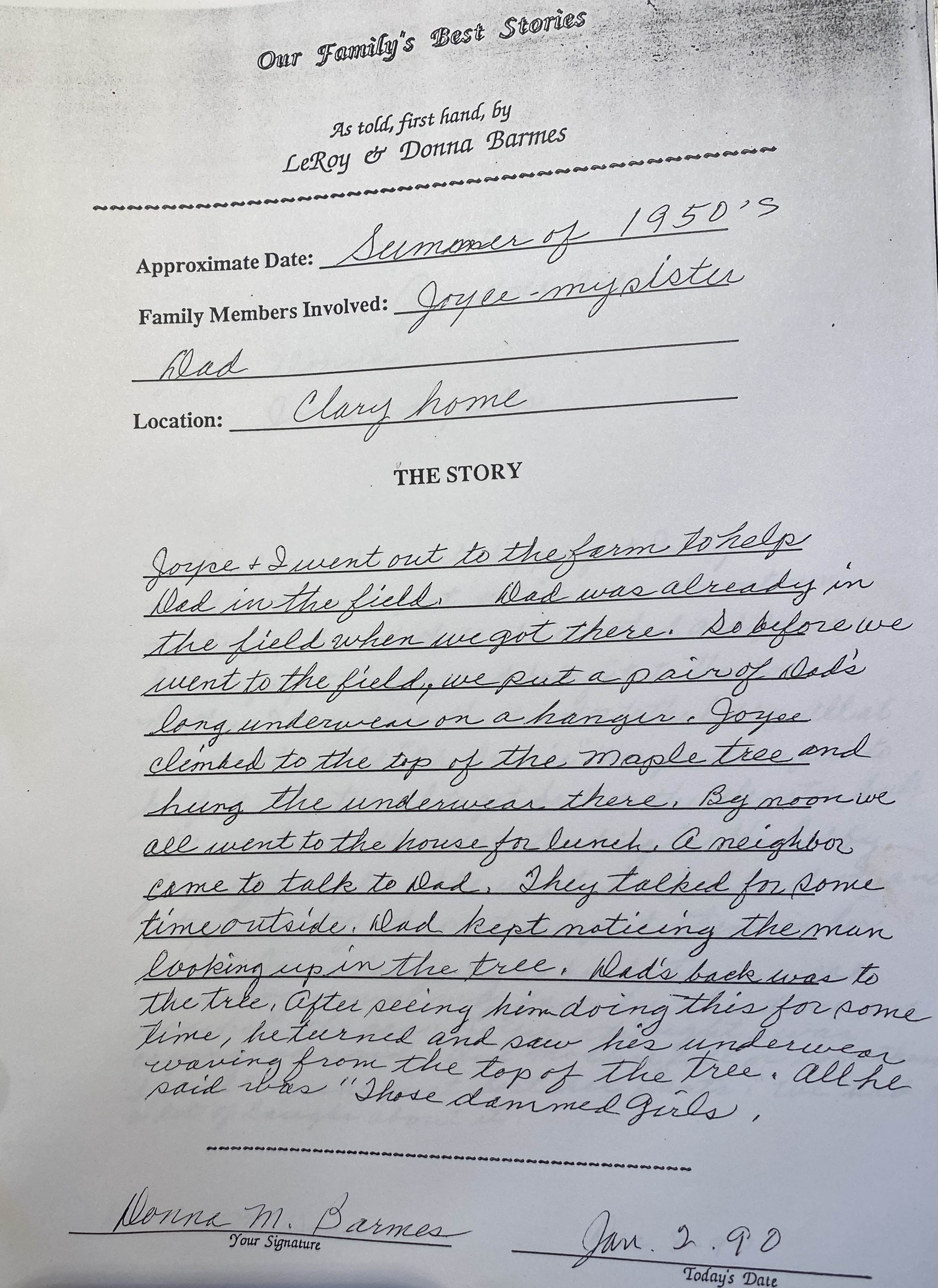 In 1990, I had them add more stories. Here are a few from my maternal grandparents, Leroy & Donna nee Clary Barmes.