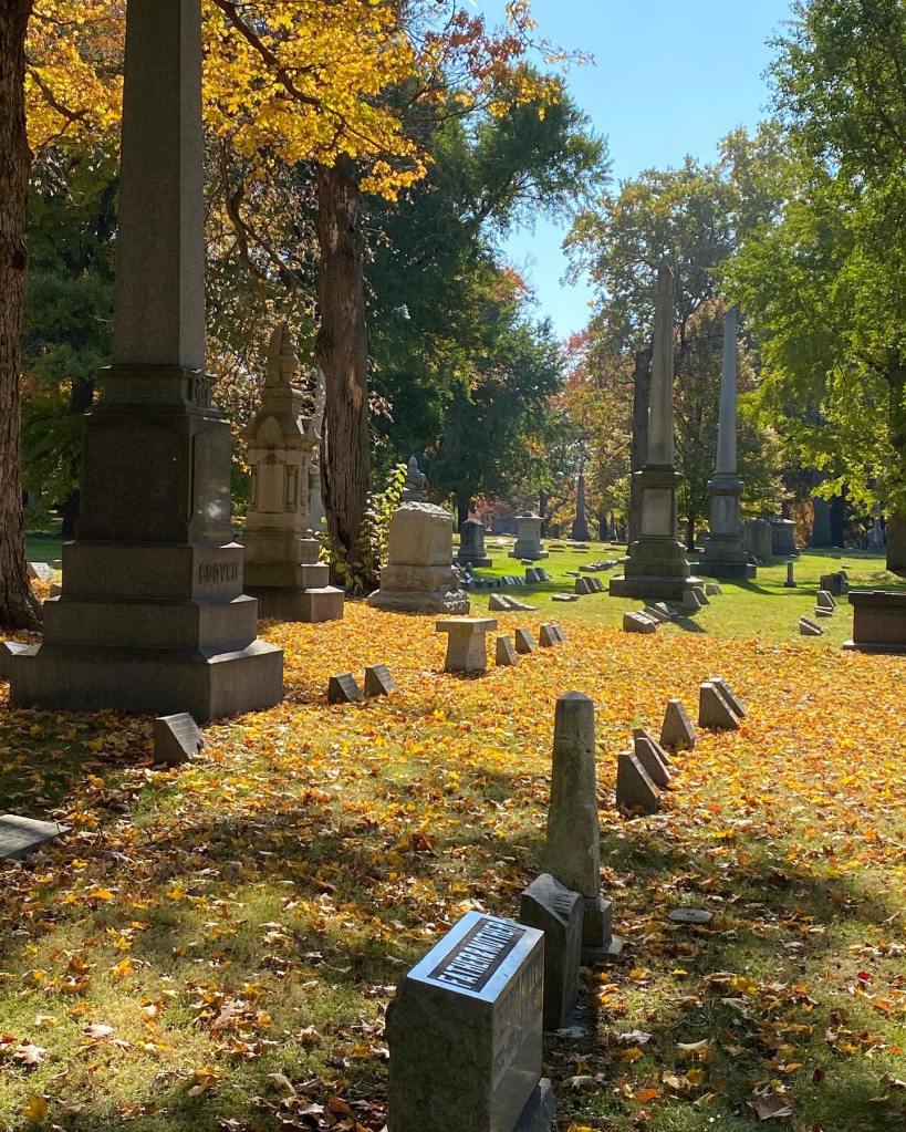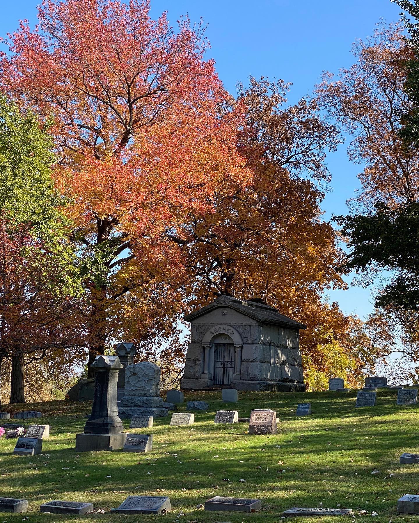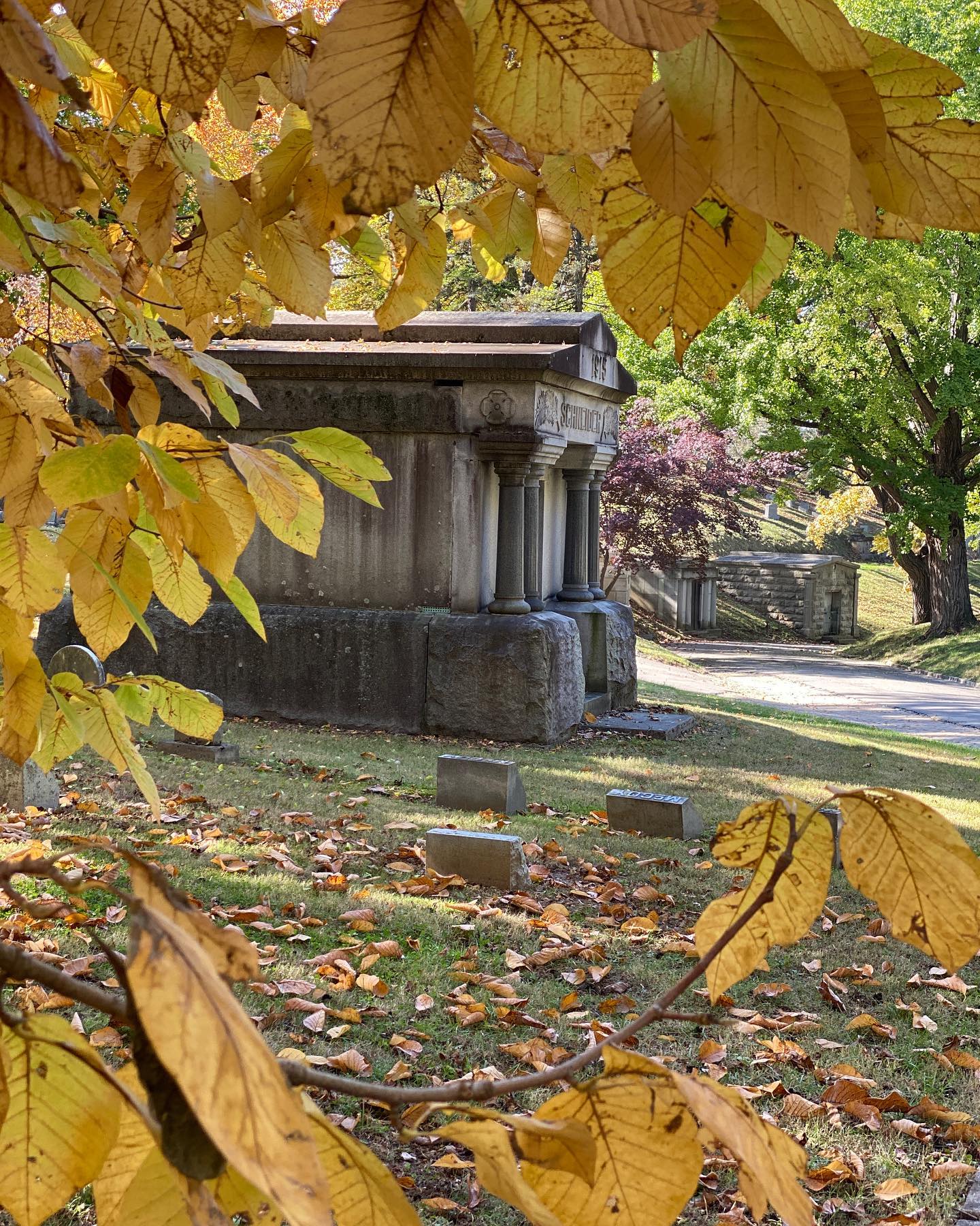 Last May I arrived at the gates of Woodland Cemetery and Arboretum, prepared to tackle the hills to capture some of the fresh springtime foliage. Sadly, even with the assistance of my cane, I could not make it past Erma Bombeck’s gravesite just inside the gate.